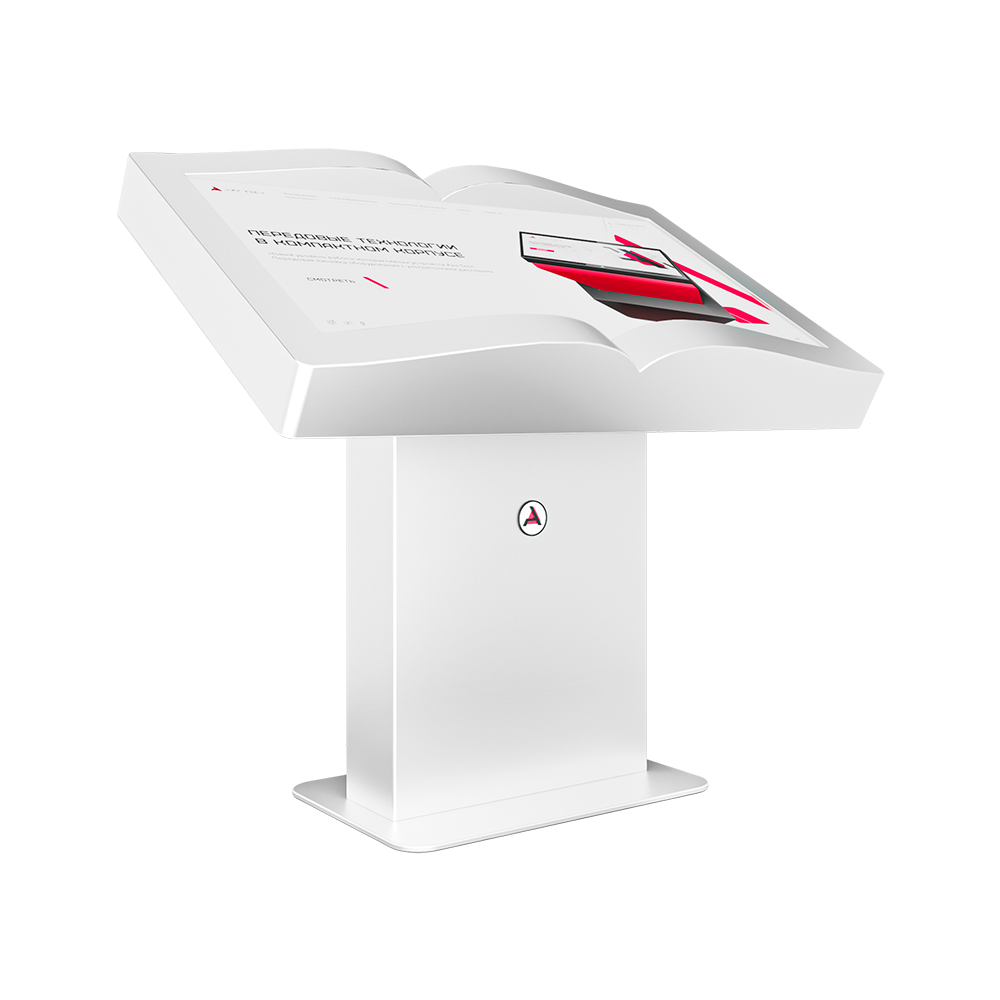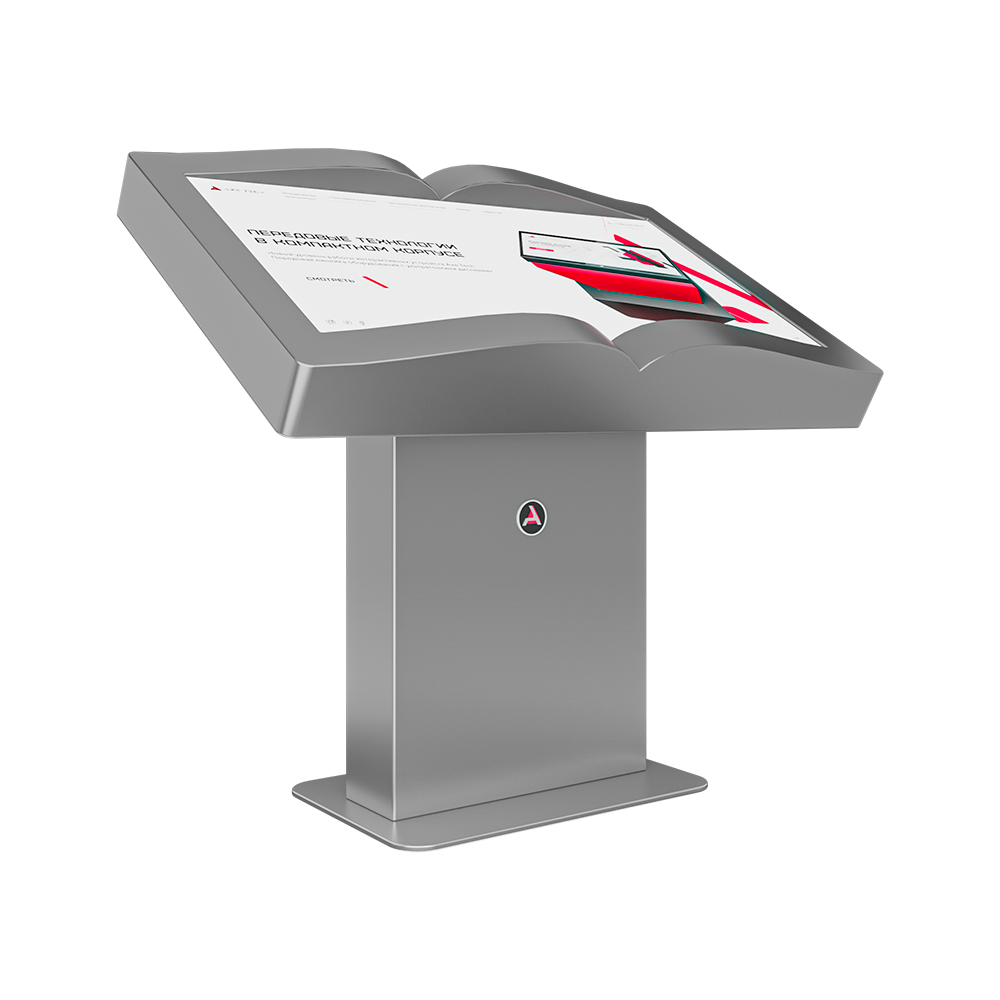 Интерактивный стол Book – устройство, форм-фактор которого реализован в форме раскрытой книги. Механическая регулировка дисплея позволит настроить пользователям оптимальный угол для взаимодействия с программным обеспечением. Оборудование может быть дополнено информационным приложением или интерактивной книгой с эффектом пролистывания страниц. Материал Сталь Разрешение 4K UltraHD Тип сенсора ИК-рамка на 10 одновременных касаний Процессор Intel Celeron Оперативная память 4 Гб Жесткий диск SSD 120 Гб Wi Fi адаптер Да Операционная система Windows 10 Аудиосистема Встроенная 2х5 Вт Цвет По каталогу RAL Внешние разъемы USB 3.0/USB 2.0/RJ-45/AUX