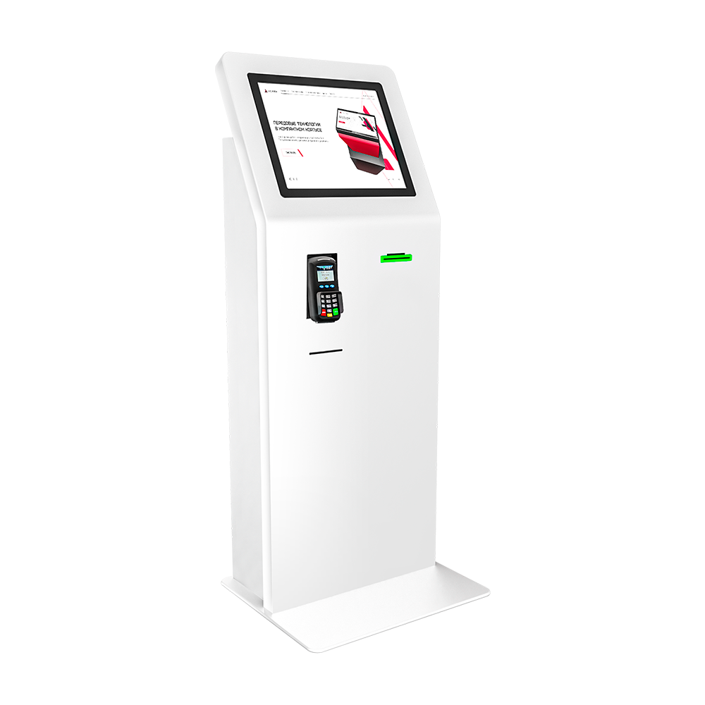 Формировать покупки в два клика позволит интерактивный терминал самообслуживания Cronus. Создание персонального счета клиента для пополнения и оплаты товаров, отображение системы скидок и акций, моментальная оплата товаров через терминал и выдача их по чеку — все это возможно благодаря данной модели. Помимо этого, по вашему запросу, в данное оборудование можно интегрировать не только оплату банковской картой, но и купюроприемник, а также монетоприемник. Материал Сталь Разрешение 1280 х 1024 Тип сенсора Проекционно-емкостная технология на 10 одновременных касаний Процессор Intel Celeron Оперативная память 4 Гб Жесткий диск SSD 120 Гб Wi Fi адаптер Да Операционная система Windows 10 Цвет По каталогу RAL Внешние разъемы RJ-45