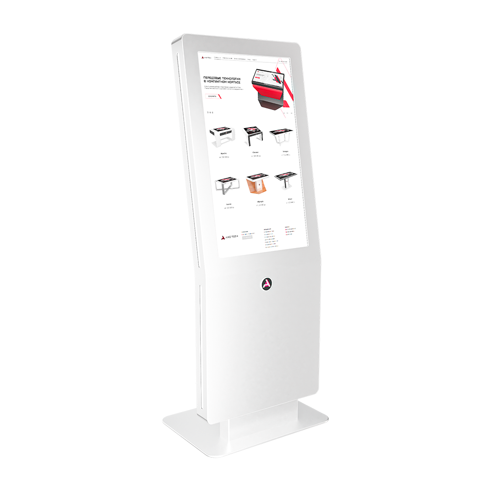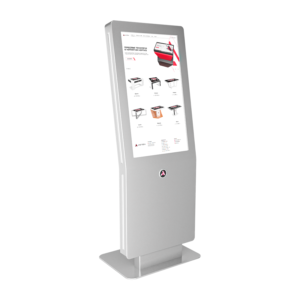 Прекрасное решение для отображения полной информации о компании, сотрудниках, ближайших мероприятиях, а также о специальных предложениях. Большой сенсорный экран, который поддерживает до 20 одновременных касаний, стальной антивандальный корпус с комфортным углом наклона являются преимуществами модели Grate. Светодиодная боковая подсветка интерактивного киоска и возможность выбора цвета из каталога RAL станут неотъемлемой частью вашего корпоративного стиля. Материал Сталь Разрешение FullHD Тип сенсора ИК-рамка на 10 одновременных касаний Процессор Intel Celeron Оперативная память 4 Гб Жесткий диск SSD 120 Гб Wi Fi адаптер Да Операционная система Windows 10 Аудиосистема Встроенная 2х5 Вт Цвет По каталогу RAL Внешние разъемы USB 3.0/USB 2.0/RJ-45/AUX