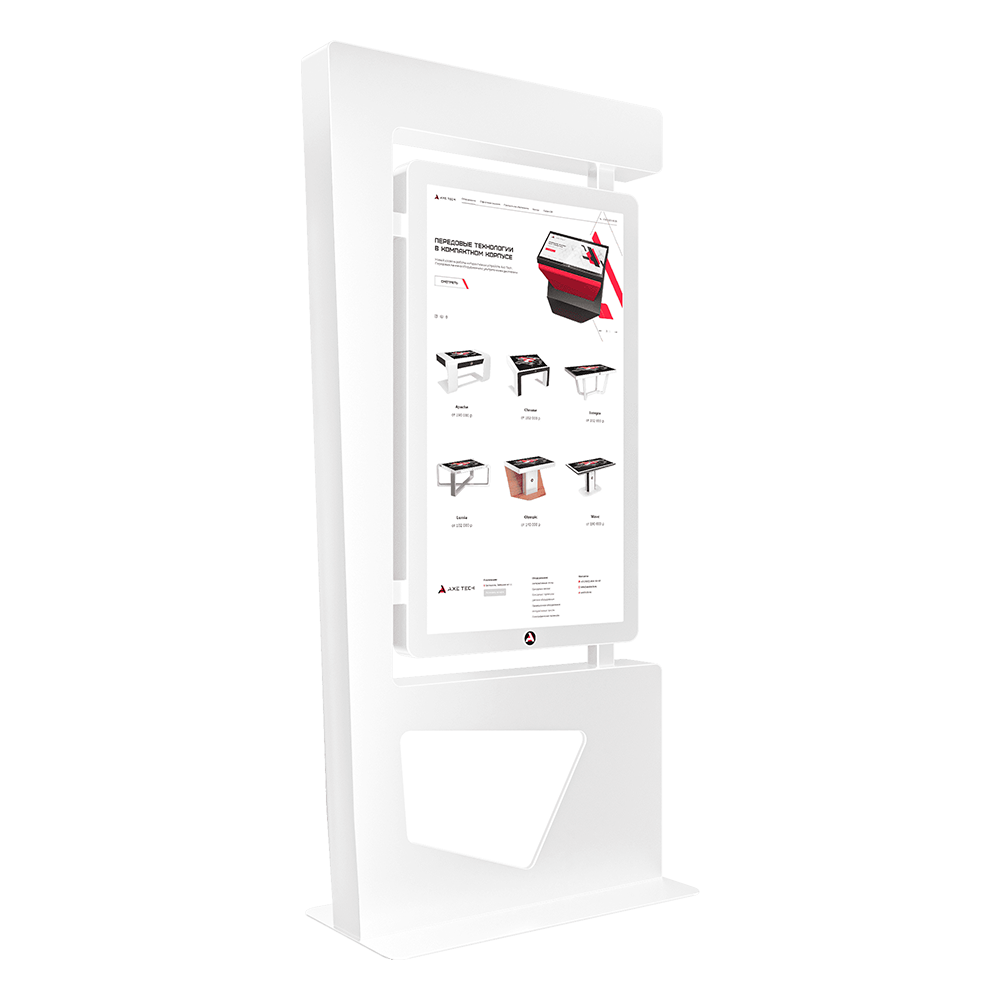 Сенсорный киоск Line - оригинальное решение для любого пространства, где главной целью является автоматизация процессов в компании и моментальное получение необходимой информации. Благодаря своему яркому и утонченному дизайну, где сенсорный экран, поддерживающий до 20 одновременных касаний, будто парит в невесомости, а нижняя часть корпуса украшена геометрической фигурой, сенсорный киоск станет настоящим украшением и привлечет внимание каждого пользователя. Помимо этого, существует возможность опционального подключения дополнительных комплектующих. Материал Сталь Разрешение 4K UltraHD Тип сенсора ИК-рамка на 20 одновременных касаний Процессор Intel Celeron Оперативная память 4 Гб Жесткий диск SSD 120 Гб Wi Fi адаптер Да Операционная система Windows 10 Аудиосистема Встроенная 2х5 Вт Цвет По каталогу RAL Внешние разъемы USB 3.0/USB 2.0/RJ-45/AUX