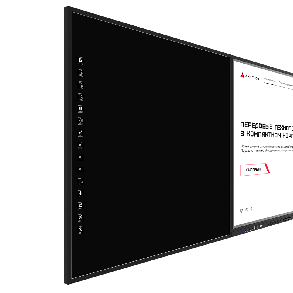 Не знаете как организовать процесс обучения проще, а также у вас есть необходимость в проведении эффективных занятий, конференций, лекций на большую аудиторию? AxeTech предлагает прекрасное решение - Universe, которое является сенсорным комплексом с интерактивной панелью посередине, включающая режим «Белой доски» со всеми необходимыми инструментами, и двумя боковыми досками на выбор: маркерной / меловой. Вся написанная информация на меловой и маркерной досках моментально отображается на центральной интерактивной панеле. Две доски обладают функциональными клавишами быстрого меню, что позволяет: работать с любыми текстовыми, аудио- и видеофайлами, создавать заметки, презентации, передавать документы через QR-код, записывать голосовое объяснение урока, перемещаться между страницами, создавать новые документы, а также все отображать на центральной сенсорной панели. Материал Сталь / Алюминий Разрешение 4K UltraHD Тип сенсора ИК-рамка на 20 одновременных касаний Оперативная память 4 Гб Жесткий диск 32 Гб Wi Fi адаптер Да Операционная система Android Аудиосистема Встроенная 2х20 Вт