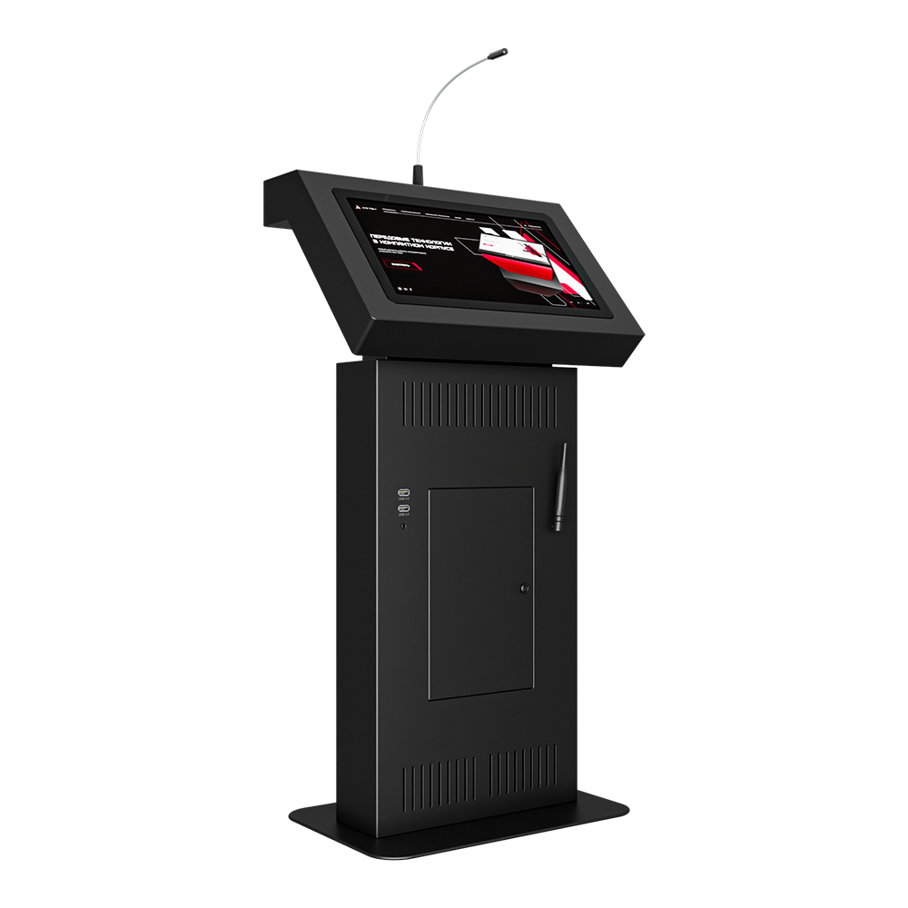 Сенсорное оборудование для проведения лекций, форумов, бизнес-конференций. Интерактивная трибуна Voice позволяет работать с любыми приложениями, текстовыми, аудио- и видеофайлами. Создавать пометки на мониторе устройства для демонстрации на большом экране. Профессиональный микрофон, яркий экран, вешние разъемы неотъемлемые составляющие данной модели. Материал Сталь Разрешение FullHD Тип сенсора Проекционно-емкостная технология на 10 касаний Процессор Intel Celeron Оперативная память 4 Гб Жесткий диск SSD 120 Гб Wi Fi адаптер Да Операционная система Windows 10 Цвет По каталогу RAL Внешние разъемы USB 3.0/USB 2.0/RJ-45/AUX/HDMI/XLR