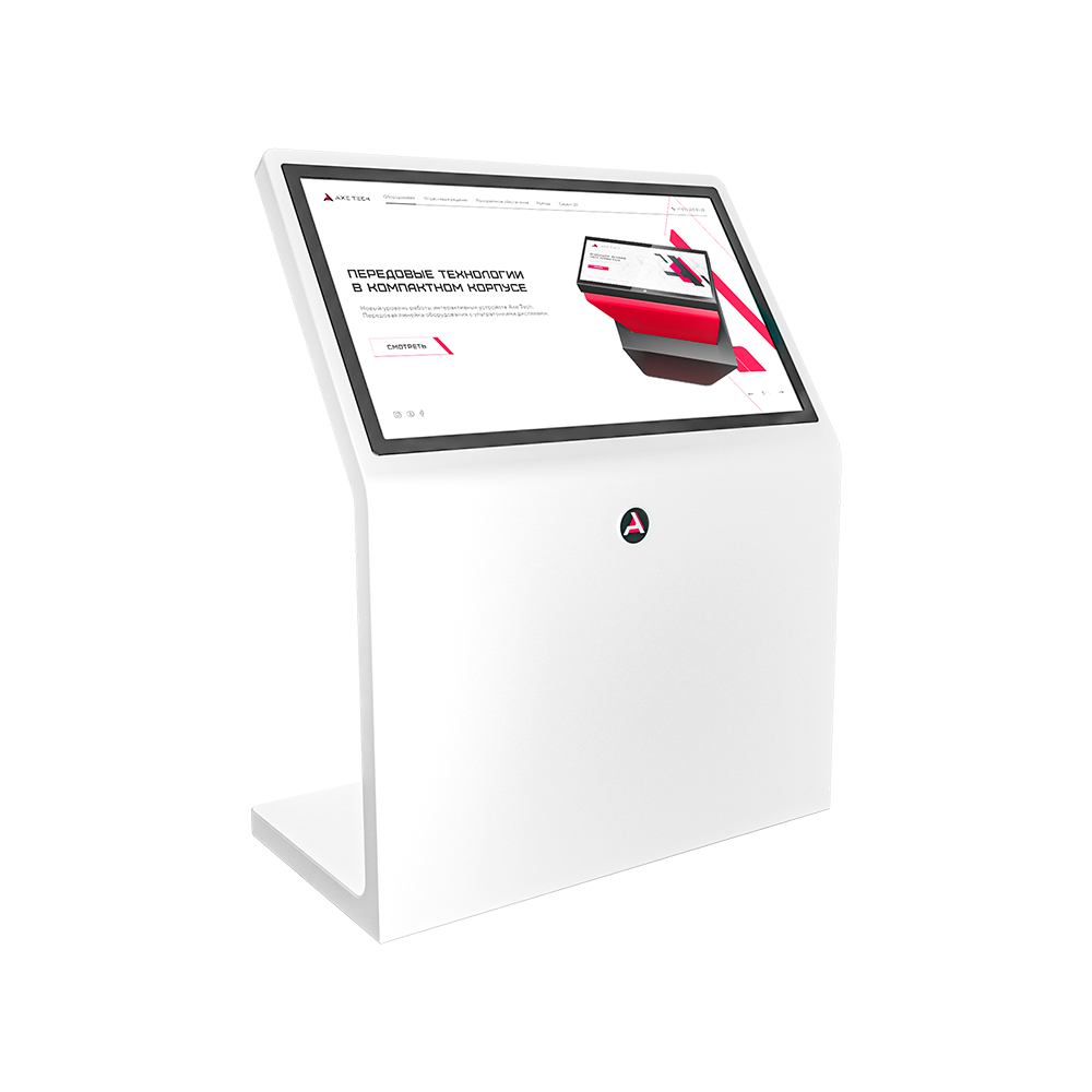 Утонченный корпус с комфортным углом наклона, альбомная ориентация экрана, мультитач-система до 20 одновременных касаний — все это относится к нашей превосходной модели, интерактивному киоску Walt. Мы учли все, чтобы сделать это устройство универсальным инструментом для бизнеса, образования, ритейла, музеев и других сфер. На большом интерактивном экране вы можете демонстрировать как рекламу, так и ассортимент предоставляемых товаров и услуг. Материал Сталь Разрешение 4K UltraHD Тип сенсора ИК-рамка на 20 одновременных касаний Процессор Intel Celeron Оперативная память 4 Гб Жесткий диск SSD 120 Гб Wi Fi адаптер Да Операционная система Windows 10 Аудиосистема Встроенная 2х5 Вт Цвет По каталогу RAL Внешние разъемы USB 3.0/USB 2.0/RJ-45/AUX