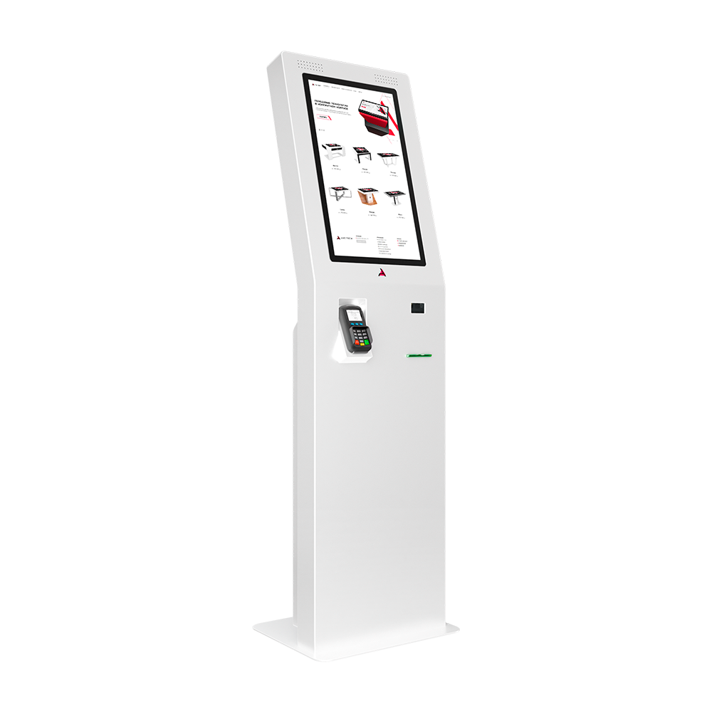Элегантный терминал самообслуживания Zion предназначен для оформления и оплаты заказа, при этом пользователь может увидеть весь каталог товаров или услуг, предоставляемых организацией. Модель оснащена вертикальным экраном, позволяющим комфортно взаимодействовать с интерфейсом программы. Несмотря на компактные размеры терминал может быть оснащён сканером штрихкодов, pos-терминалом для приема оплаты, считывателем дисконтных карт и другими компонентами. Материал Сталь Разрешение FullHD Тип сенсора Проекционно-емкостная технология на 10 одновременных касаний Процессор Intel Celeron Оперативная память 4 Гб Жесткий диск SSD 120 Гб Wi Fi адаптер Да Операционная система Windows 10 Аудиосистема Встроенная 2х5 Вт Цвет По каталогу RAL Внешние разъемы RJ-45